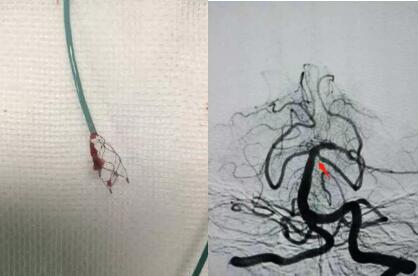 取出的血栓 取栓后基底動脈再通