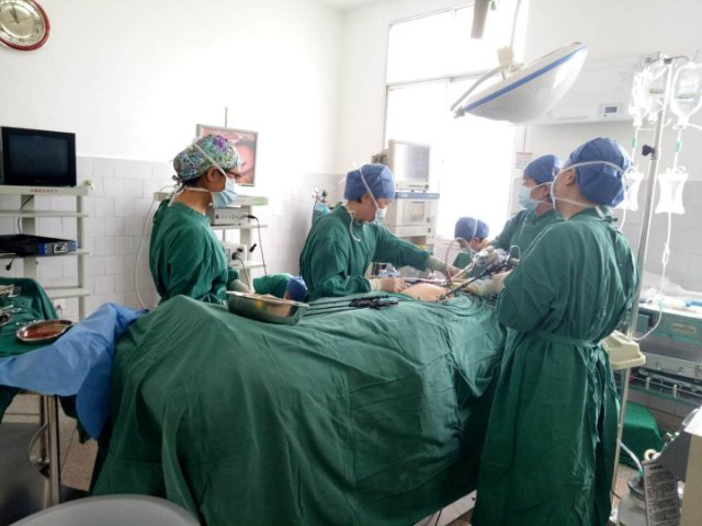 高麗娟(右一)指導(dǎo)科室開(kāi)展科室首例腹腔鏡手術(shù)