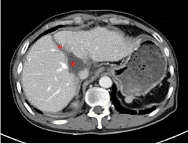 術(shù)前增強CT顯示腫瘤位于肝臟尾狀葉