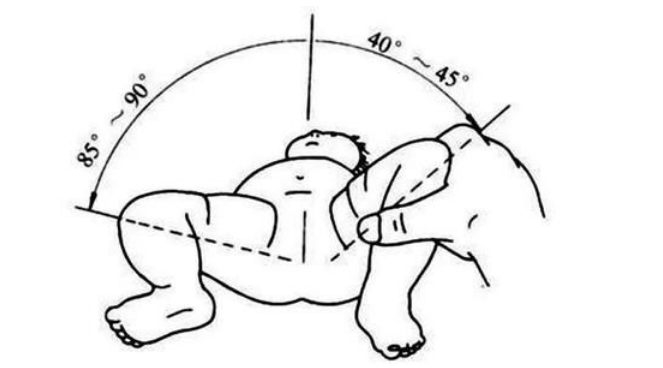 孩子平臥在床上,膝關(guān)節(jié)抬起,像青蛙的姿勢一樣向兩側(cè)外展,觀察嬰兒的大腿是否能基本觸及床面。兩膝均能觸及床面為正常,如有一側(cè)或雙側(cè)不能觸及床面,就應(yīng)及時到醫(yī)院檢查。