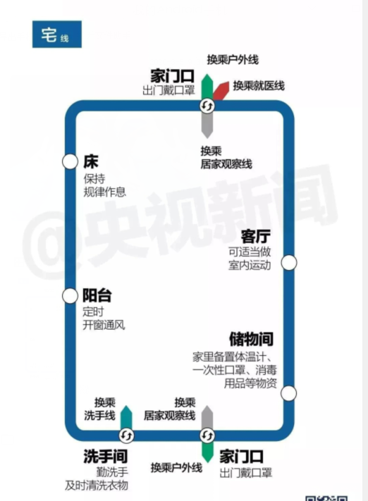 疫情發(fā)生以來,“宅”成為了人們生活的主旋律,每天不是在家里蹲,就是在家里躺。有的網(wǎng)友甚至還自我調(diào)侃,制作出了“客廳-陽臺-臥式-廁所-廚房的宅家換乘線路圖”。