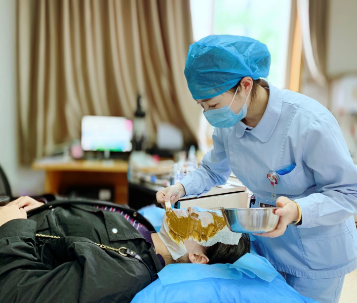 4. 中藥面敷。采用具有清熱解毒、活血化淤、美白消斑的中藥直接作用于皮損處,直達(dá)病所,起到治療作用。