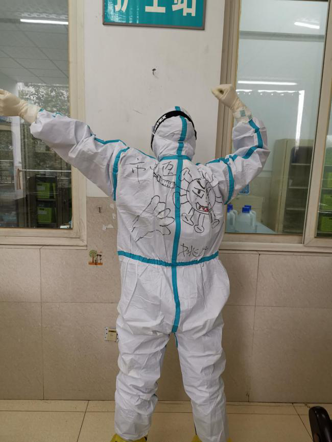 模糊不清的護(hù)目鏡,口罩在臉上留下的一道道壓痕,讓我總是大汗淋漓的密不透風(fēng)的防護(hù)服,讓病房的婆婆一見(jiàn)我們就心跳加速,血壓升高。她神情惶恐的說(shuō):看著我們就害怕,穿的像是全副武裝的“恐怖分子”。在這種封閉的環(huán)境下,我們除了應(yīng)用自己專業(yè)的知識(shí)護(hù)理患者外,更應(yīng)該多與患者交流,多開導(dǎo),多鼓勵(lì),多關(guān)心,心理護(hù)理也是治愈他們的良藥。
