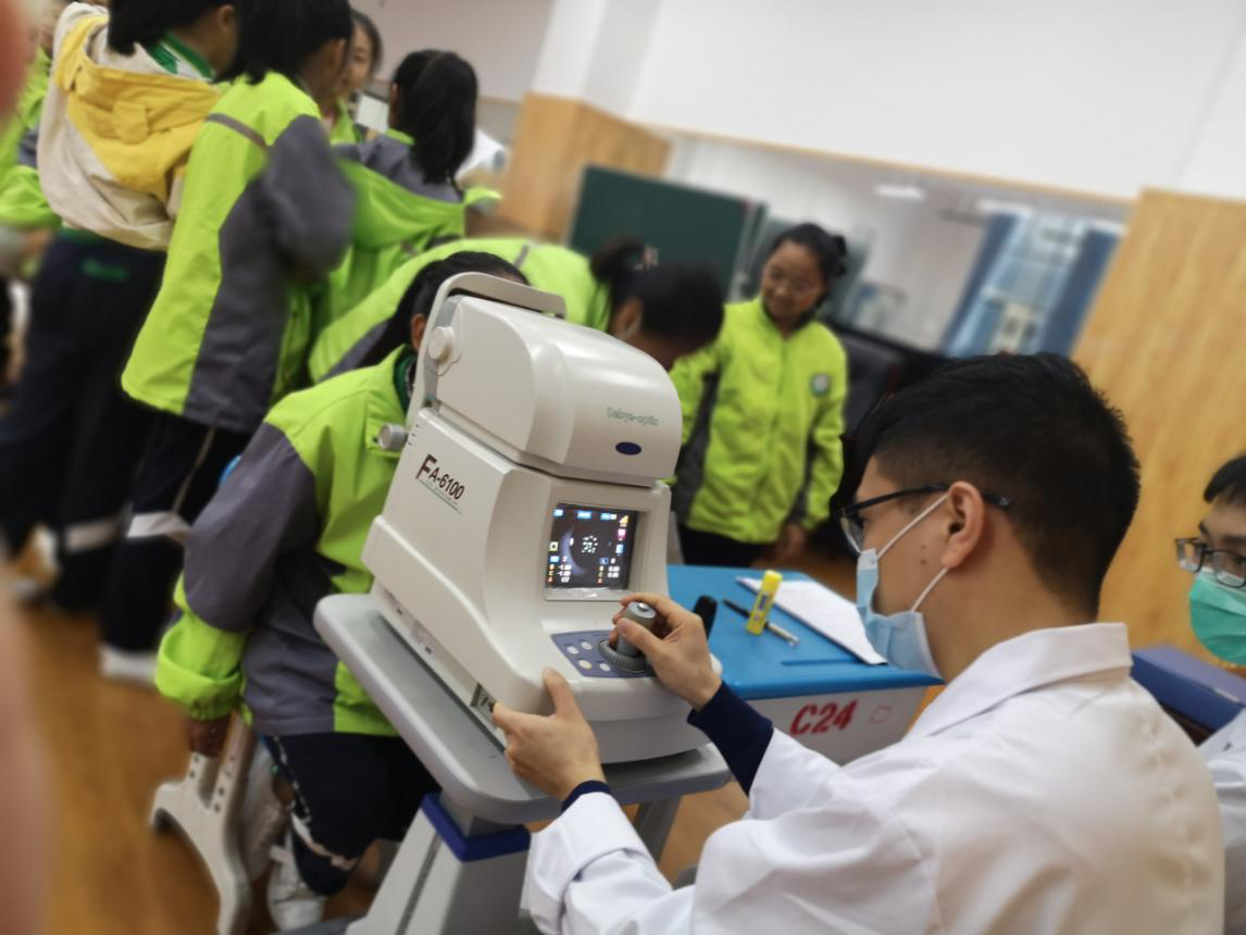 在活動(dòng)現(xiàn)場(chǎng),學(xué)生們有序地排隊(duì)進(jìn)行了視力篩查,檢查項(xiàng)目包括:視力檢查、電腦驗(yàn)光等。