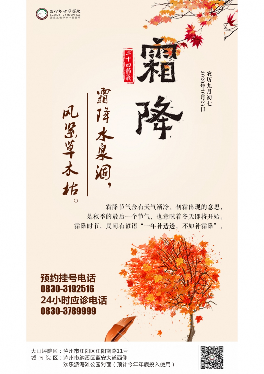 霜降是秋天的最后一個(gè)節(jié)氣,此時(shí),氣候干燥,天氣多變,氣溫往往聚升聚降,體質(zhì)弱的人很容易生病,所以霜降養(yǎng)生尤為重要。
