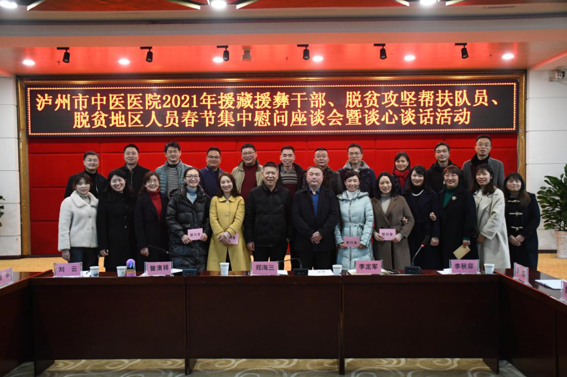 2月5日,瀘州市中醫(yī)醫(yī)院召開了援藏援彝干部、脫貧攻堅綜合幫扶隊員、脫貧地區(qū)人員春節(jié)集中慰問座談會。會議由醫(yī)院黨委副書記李定軍主持。醫(yī)院黨委書記、院長鄭海三、相關(guān)職能部門負責人,援建干部參加會議。