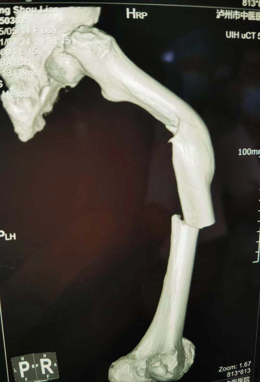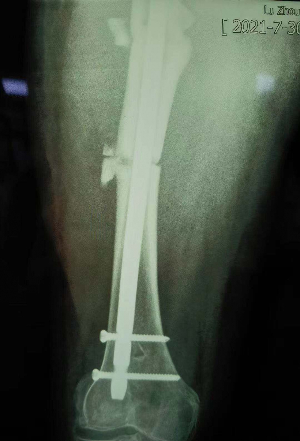 張女士家住瀘縣云錦鎮(zhèn),常年在家務(wù)農(nóng)。近日,她在家門口壩子走路時,不小心把大腿摔斷,家人隨即打了120,送到當(dāng)?shù)鼗鶎俞t(yī)院進(jìn)行救治。因她的腿有基礎(chǔ)疾病,傷情較為嚴(yán)重,7月23日,又慕名轉(zhuǎn)送到了瀘州市中醫(yī)醫(yī)院骨傷一科進(jìn)行治療。