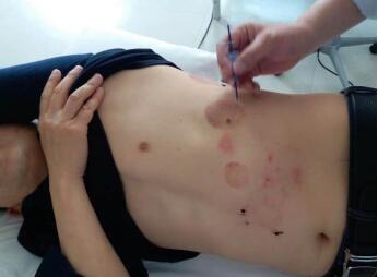 藏民洛絨澤仁身患帶狀皰疹半月左右,腰圍上長了一圈水痘,疼痛難忍,經(jīng)周熙采用米粒灸治療后,控制了皰疹的發(fā)展,通過針刺夾脊穴緩解疼痛,治療一周后皰疹逐漸消失,疼痛也減輕不少,10天后痊愈。