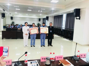 頒獎現(xiàn)場:我院護工楊福連(左二)、袁成芬(左三)榮獲一等獎