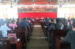 2018年3月21日下午,瀘州市中醫(yī)醫(yī)院在門診11樓學術(shù)廳召開“2017年度表揚大會暨2018年開年工作會”,醫(yī)院院領導、全體中干、黨員、副高職稱以上人員及優(yōu)秀個人獲獎者出席會議,會議由醫(yī)院副院長吳智惠主持。?