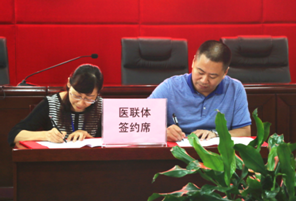 我院副院長吳智惠(左一)與瀘縣中醫(yī)醫(yī)院副院長李孝剛(右一)簽訂醫(yī)聯(lián)體協(xié)議書