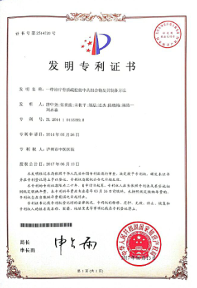 近日,我院自主研發(fā)的“一種治療骨質(zhì)疏松的中藥組合物及其制備方法”被國家知識(shí)產(chǎn)權(quán)局授予發(fā)明專利證書。這是我院獲得的首項(xiàng)發(fā)明專利,我院骨傷科大科主任唐中堯?yàn)樵搶@芯康呢?fù)責(zé)人。該成果明確了該組方的制備工藝,為骨質(zhì)疏松患者提供了一種新的治療方法。