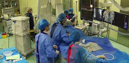 手術(shù)當(dāng)日,在進(jìn)行相關(guān)的術(shù)前檢查后,一臺(tái)由心內(nèi)科、導(dǎo)管室、麻醉科、超聲科、心胸外科等多科室專家組成的手術(shù)團(tuán)隊(duì)進(jìn)入心臟導(dǎo)管室待命。