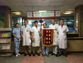 醫(yī)院外二科醫(yī)護(hù)人員與患者周女士合影(右一為副主任醫(yī)師謝勇)