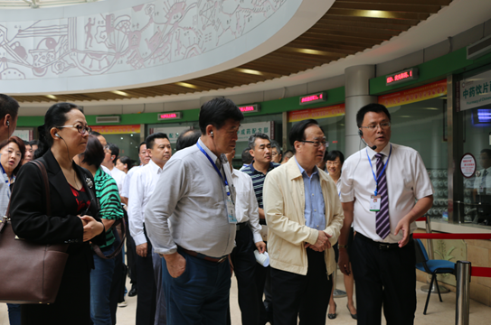 中央第四巡回督導(dǎo)組組長張維慶(左二)一行參觀門診大樓前的