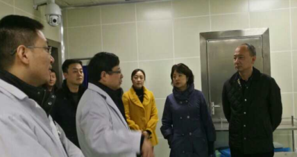 四川省中醫(yī)藥管理局局長田興軍 (右一)、瀘州市人民政府副市長馬宗慧(右二)、瀘州市衛(wèi)生計生委黨組書記涂曲平(右三)查看醫(yī)院心臟介入診療室