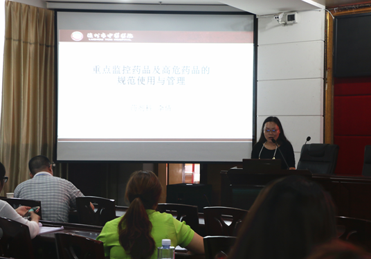 我院藥劑科主任張世波、副主任張盛敏、主管藥師李倩,藥師邵單炫、中藥師陶雪梅分別作了題為《新藥申報(bào)的流程》、《麻醉藥品、精神藥品管理及臨床應(yīng)用》、《重點(diǎn)監(jiān)控藥品及高危藥品的規(guī)范使用與管理》、《抗菌藥物的合理使用》、《中藥注射劑的合理應(yīng)用》的講座。各位老師圍繞不同藥物在臨床中合理應(yīng)用的原則、方法及技巧進(jìn)行講解,內(nèi)容豐富專業(yè)、所舉臨床案例緊扣主題,語(yǔ)言通俗易懂,贏得現(xiàn)場(chǎng)陣陣掌聲。
