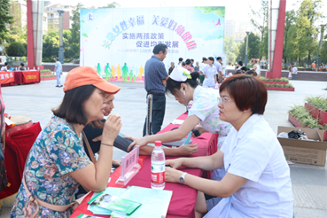根據(jù)中共中央、國(guó)務(wù)院關(guān)于全面實(shí)施“兩孩”政策的決定,結(jié)合省衛(wèi)計(jì)委“計(jì)劃生育政策法規(guī)宣傳公開(kāi)”項(xiàng)目工作要求,2016年7月11日上午,市衛(wèi)生計(jì)生委和江陽(yáng)區(qū)衛(wèi)生計(jì)生局在江陽(yáng)公園共同舉辦主題為“實(shí)施全面兩孩政策? 促進(jìn)人口均衡發(fā)展” 的7.11“世界人口日”宣傳活動(dòng),我院醫(yī)療團(tuán)隊(duì)參加本次活動(dòng)。