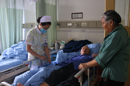 ???????????? ?住院部護(hù)士細(xì)心地為老年患者加藥