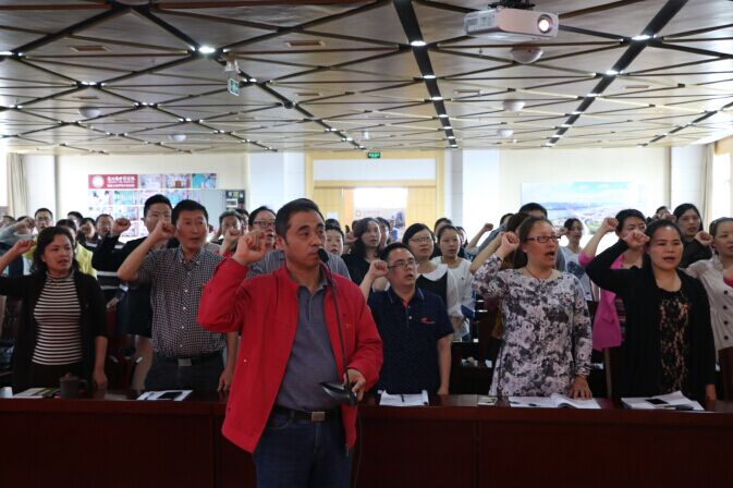 活動中,我院黨委副書記王萬芳發(fā)表講話,要求全體黨員對照入黨志愿談理想、談信念,對照入黨誓詞找標準、找差距,進一步明確做合格黨員的標準要求。隨后,全體黨員在老黨員、我院黨委委員鄒錦平同志的帶領(lǐng)下,面對鮮紅的黨旗,鄭重地舉起右拳,重溫入黨誓詞,莊嚴地宣誓。