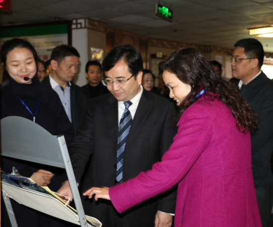 ?我院黨委副書記王萬芳(右一)正在向巴中市副市長(zhǎng)邱成平(右二)