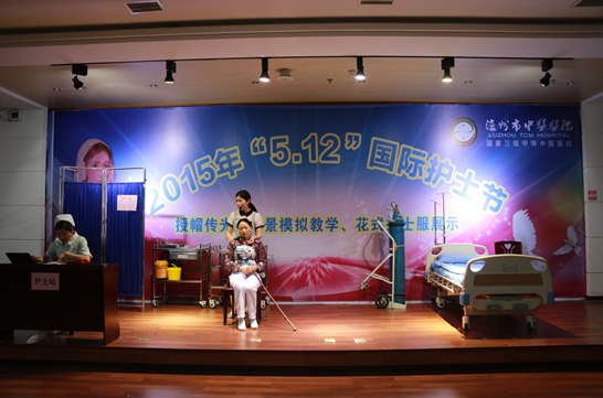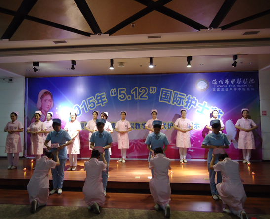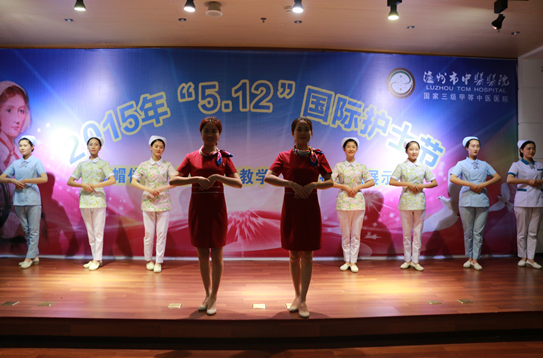 隨后的護士新裝展示,一開場就出場了2名帥氣的手術室男護士,身著新款手術室護士服,頭戴時尚護士花帽,其輕巧、透氣、不脫色、不掉絮,更美觀的特點讓男護士模特兒楊剛倍感舒適時尚。10名美麗大方的護士美眉身著花式護士服款款走上舞臺,進行常用禮儀風采展示,雙手托盤平穩(wěn)、干練;禮貌用語輕柔舒緩、態(tài)度謙和。通過從微笑、坐、立、行姿態(tài)及日常醫(yī)療護理等標準動作展示,體現(xiàn)出我院護理人員在素質、修養(yǎng)、行為、氣質的綜合反映。護士服按護理崗位進行區(qū)別,色彩分明,紅色制服是導診護士服,嫻靜端莊;粉紅花式護士服是ICU、兒科、透析室的護士服,柔和、溫馨;藍灰花式是內科護士服,純潔而冷靜;純藍色護士服仿佛夜空中靜謐的月色,適合外科護士著裝;行政和醫(yī)技職能科室護士使用白鑲孔雀藍服裝,簡潔中透出自然。護士服通過造型、質料、色彩、配件,體現(xiàn)出獨特的個性風格,符合公眾的審美情趣,利于病人的心境調節(jié),更重要的是反映了醫(yī)院深層次的人文文化。