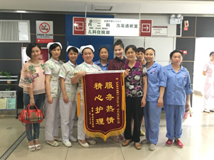 ??? 近日,兩面寫著“崇高醫(yī)德 妙手仁心”、“服務(wù)熱情 精心護理”的錦旗送到了我院內(nèi)二科醫(yī)護人員的手中,這是一位83歲高齡,長期臥床的腦梗患者家屬為感謝醫(yī)生精湛的醫(yī)術(shù)及護理人員的悉心護理而送給他們的禮物。????? 患者家屬與黃遠瓊(右二)及內(nèi)二科主任仇燚(左二)等醫(yī)務(wù)人員合影????因病結(jié)緣 主...