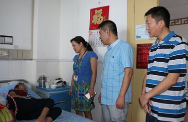 2016年8月19日上午,我院院長、黨委書記鄭海三,黨委副書記王萬芳,紀委書記何啟紅來到醫(yī)院住院部心血管內(nèi)科病房,看望慰問對口幫扶貧困戶患者——敘永縣觀興鎮(zhèn)騎龍村一社村民李仁連,送上牛奶、水果等慰問品。??????????? ?? 院領(lǐng)導(dǎo)親手為貧困戶患者李仁連送上慰問品??院領(lǐng)導(dǎo)與李仁連親切交談,詳...