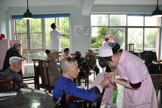???? 5月14日下午,護(hù)理部號(hào)召全院護(hù)士利用休息時(shí)間到南苑社區(qū)老人院敬獻(xiàn)了愛心。護(hù)士們拉著老人的手噓寒問暖,并為40多位老人進(jìn)行了生活護(hù)理,洗頭、修剪指甲、按摩等。同時(shí)針對(duì)老年人常患的慢性病予以講解和指導(dǎo),強(qiáng)化了老人的基本健康意識(shí)。接著他們挽起衣袖,打掃了公寓的清潔衛(wèi)生。此為醫(yī)院慶祝“5.12”...