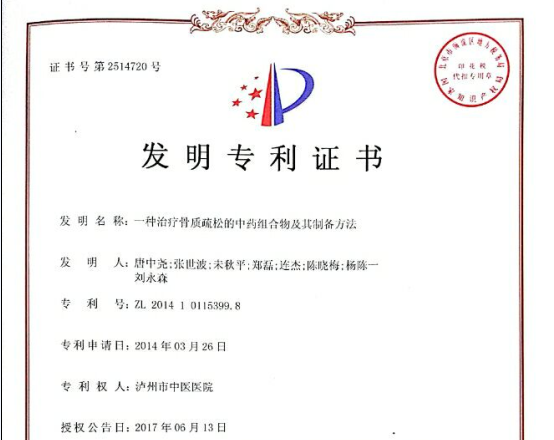 近日,我院自主研發(fā)的“一種治療骨質(zhì)疏松的中藥組合物及其制備方法”被國家知識產(chǎn)權(quán)局授予發(fā)明專利證書。這是我院獲得的首項(xiàng)發(fā)明專利,我院骨傷科大科主任唐中堯?yàn)樵搶@芯康呢?fù)責(zé)人。該成果明確了該組方的制備工藝,為骨質(zhì)疏松患者提供了一種新的治療方法。???? ? ?????據(jù)悉,一直以來,我院始終秉承醫(yī)教研協(xié)...